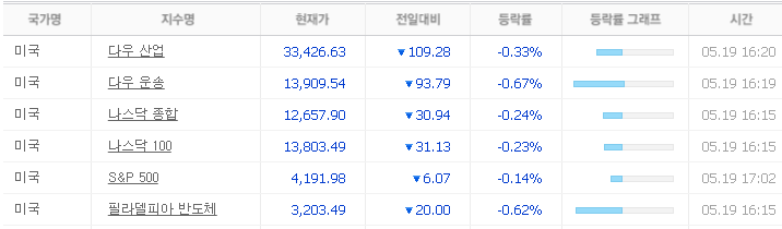 2023년 5월 19일 해외 주식장 마감시황 살펴 보겠습니다.