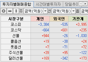 기관 코스피, 코스닥은 순매수, 선물 순매도
