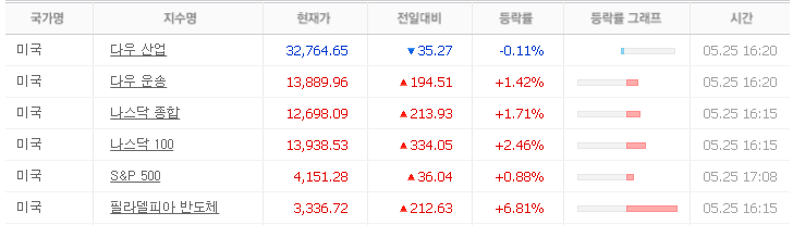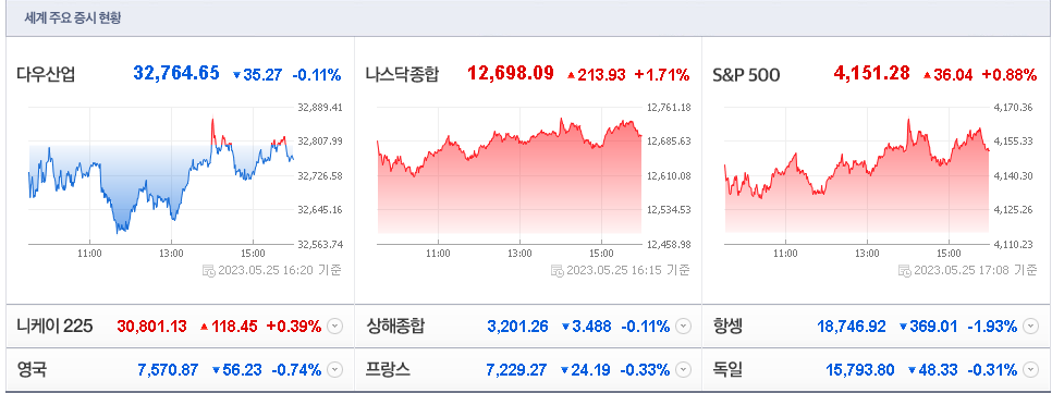 2023년 5월 25일 해외 주식장 마감시황 살펴 보겠습니다.