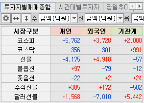 외국인 코스피 순매수, 코스닥 순매도, 선물 순매수