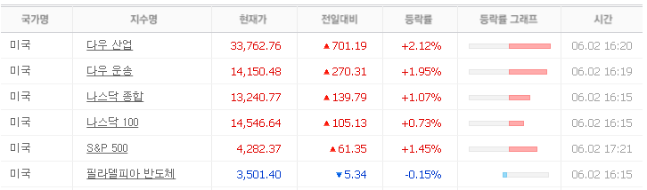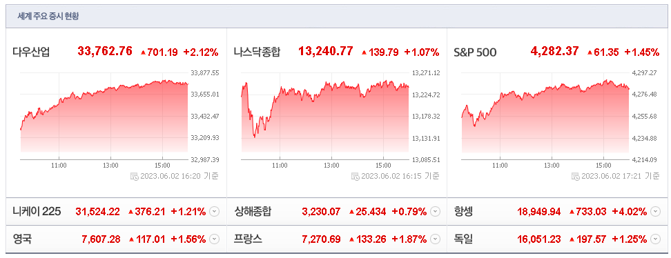 2023년 6월 2일 해외 주식장 마감시황 살펴 보겠습니다.