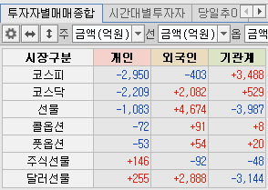 외국인 코스피 순매도, 코스닥, 선물은 순매수