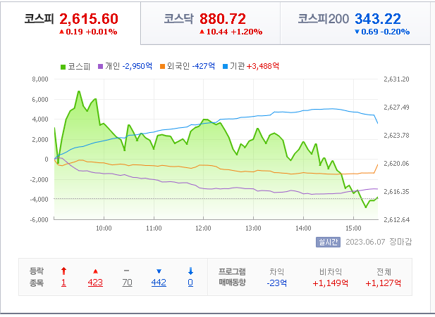 2023년 6월 7일 국내 주식장 마감시황 살펴 보겠습니다.